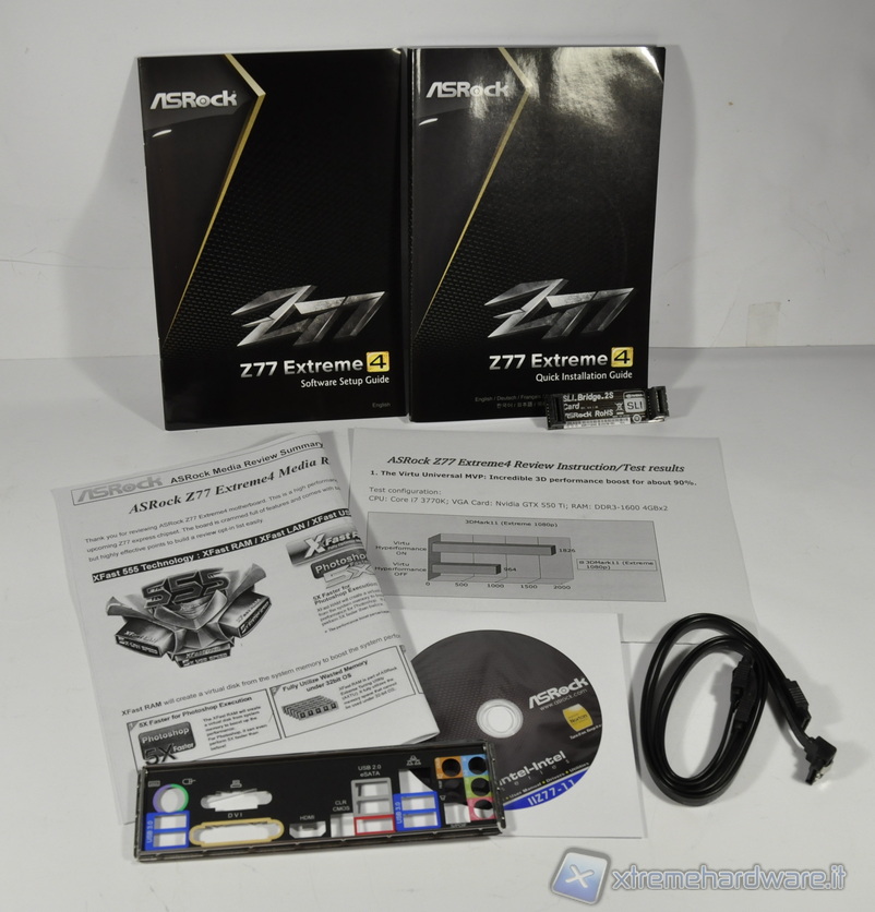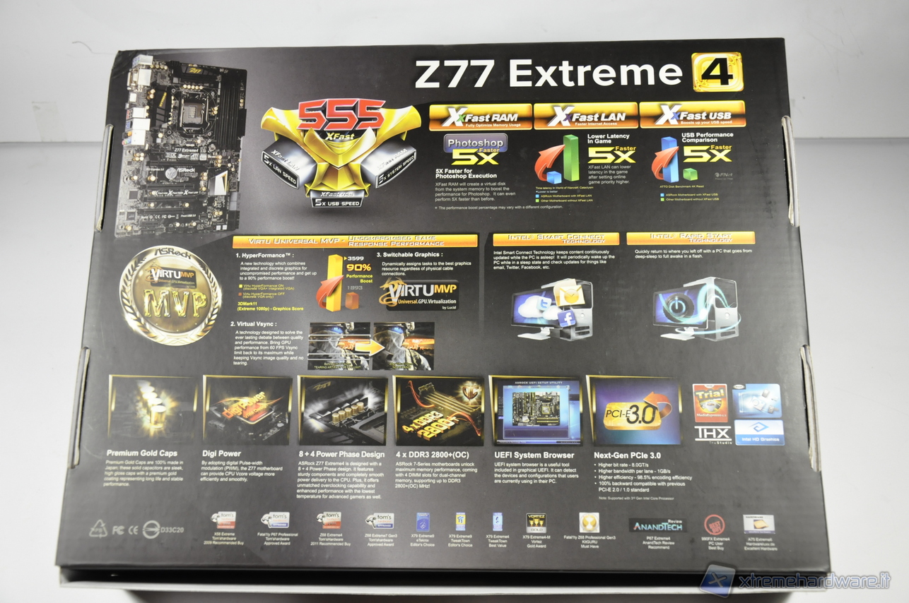 La confezione della Z77 Extreme4 è ricca di informazioni in merito alle funzionalità e peculiarità della scheda.