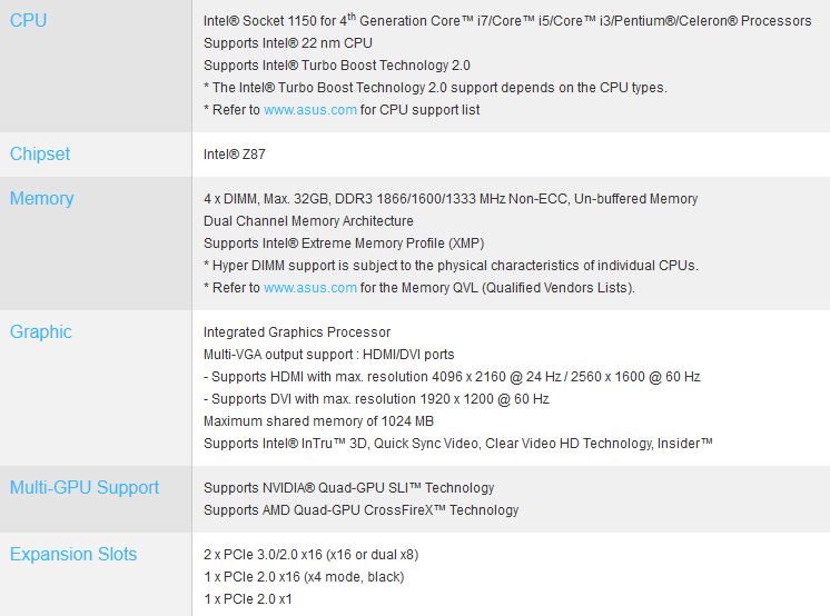 ASUS GRYPHON Z87, la famiglia TUF si espande - Specifiche Tecniche