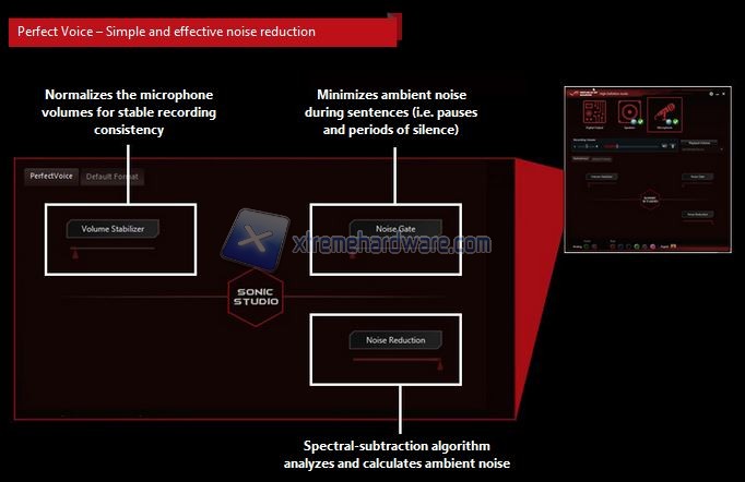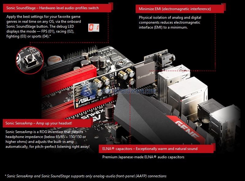 • Il Sonic SoundStage che permette di switchare tra 4 profili audio personalizzati, con un pulsante sulla scheda madre e quindi indipendentemente dal sistema installato (pensiamo ad esempio ad uno steam OS)