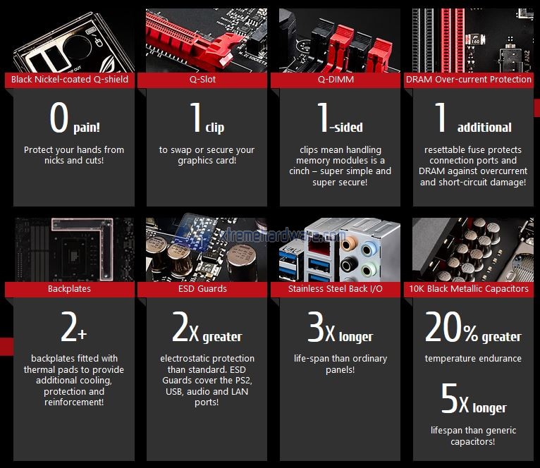 ASUS non ha trascurato l’importanza di fornire una qualità audio impeccabile: su tutta la linea di motherboard Maximus VII è presente l’acclamato chip SupremeFX Impact II che minimizza le interferenze elettromagnetiche (EMI). Due le features di rilievo: