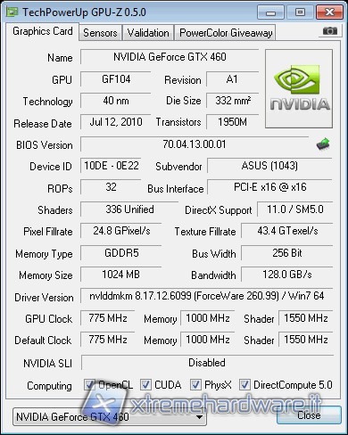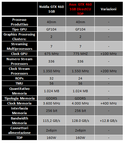 Asus GTX 460 1GB DirectCU TOP: Scheda e Specifiche Tecniche: