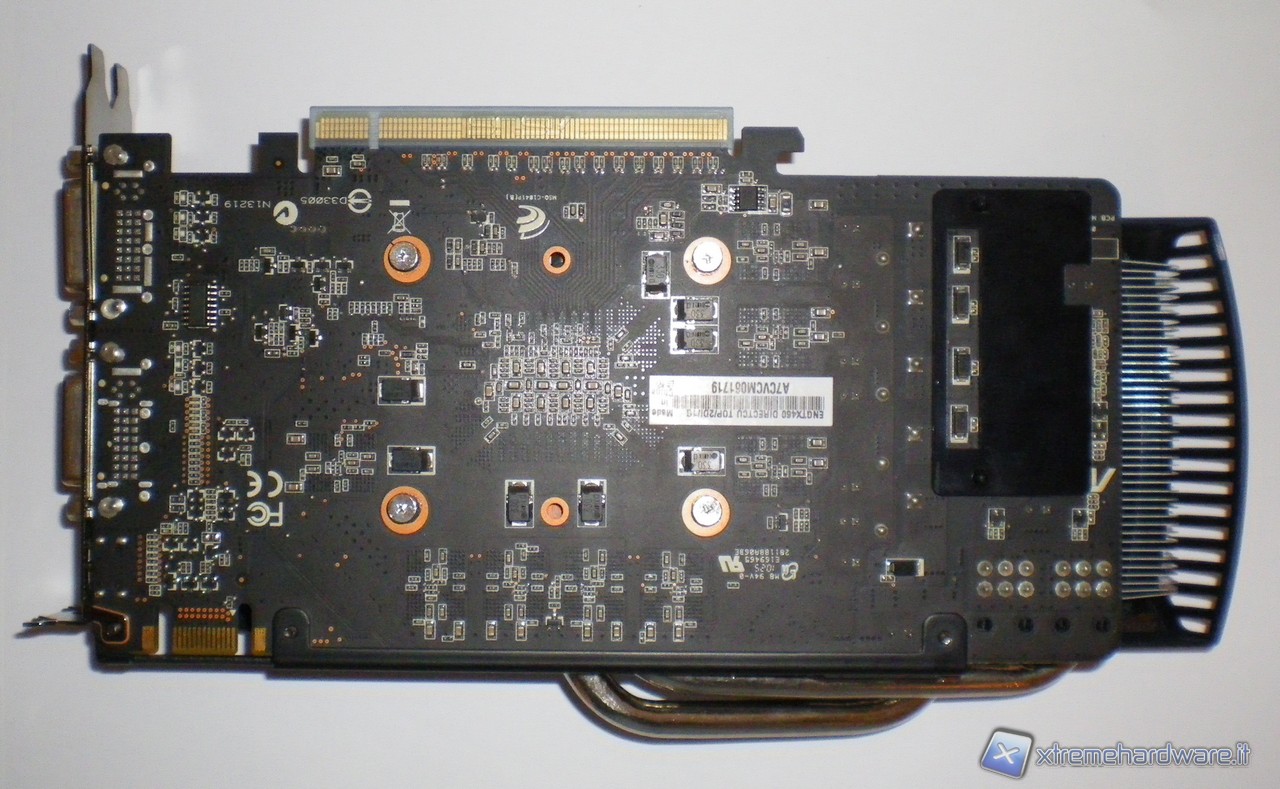 La prima che notiamo il suo dissipatore e la sua ventola, sono del tutto diversi rispetto ad un modello reference. Il sistema DirectCU permette di avere prestazioni migliori rispetto ad un raffreddamendo di tipo standard. Il PCB è di colore nero e lo possiamo osservare meglio quando osserviamo la scheda nella parte posteriore.