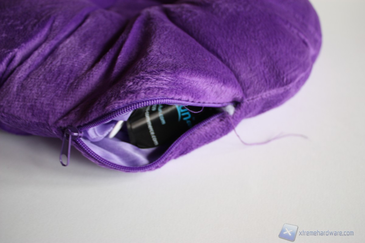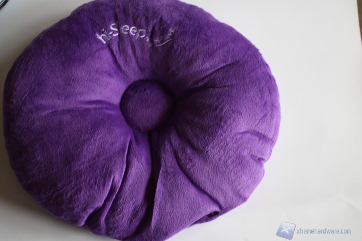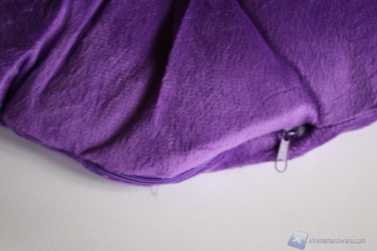 Estratto il cuscino, notiamo subito l'estrema morbidezza e leggerezza dello stesso, che ci fa quasi indurre a pensare che non contenga nulla dentro di sé. Ovviamente la leggerezza è dovuta ai materiali che sono Teryelene 100% per l'esterno e 100% Eve Foam per l'interno. In alto, frontalmente, campeggia il logo dell'azienda ricamato nel tessuto, mentre nel retro del cuscino non troviamo nulla.