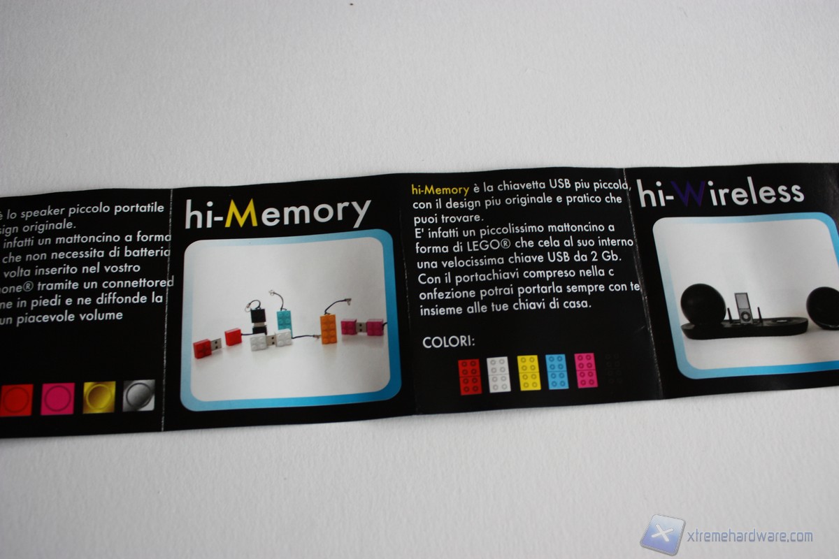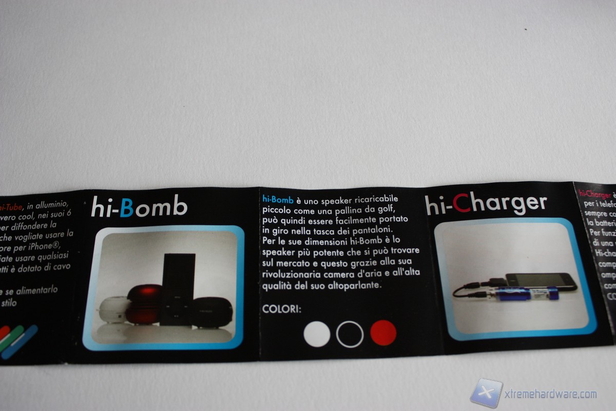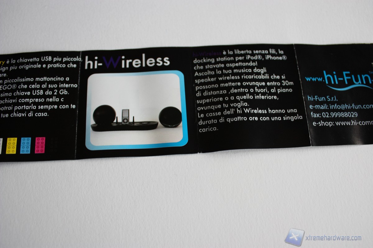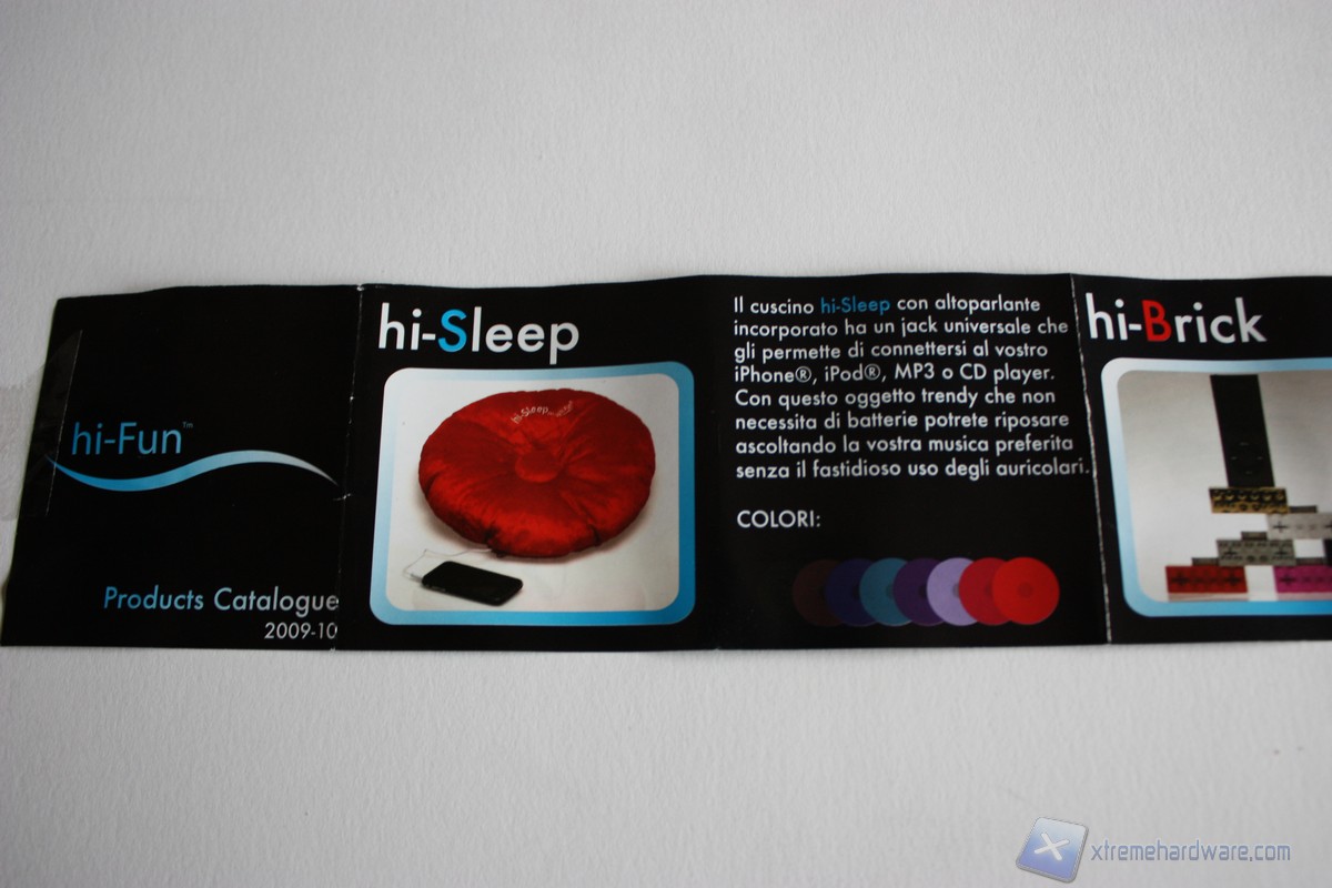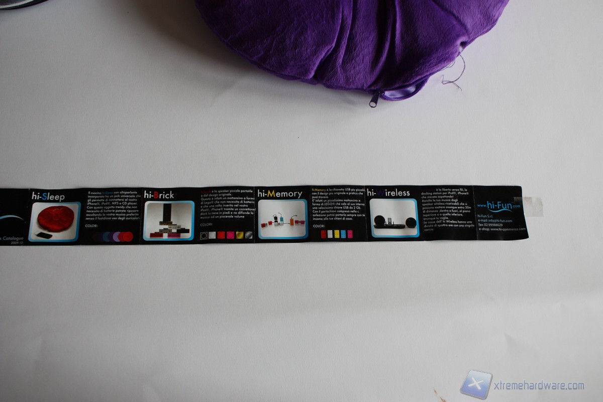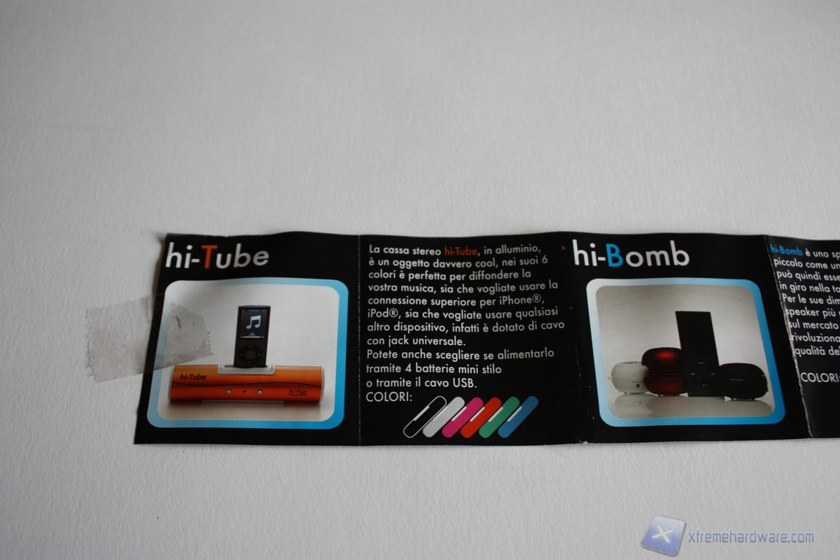 Diamo uno sguardo al cartoncino che ci mostra i prodotti della gamma Hi-Fun. L'offerta è molto ampia e ci permette di scegliere le forme e i colori che più ci aggradano per la riproduzione di musica dal nostro smartphone.