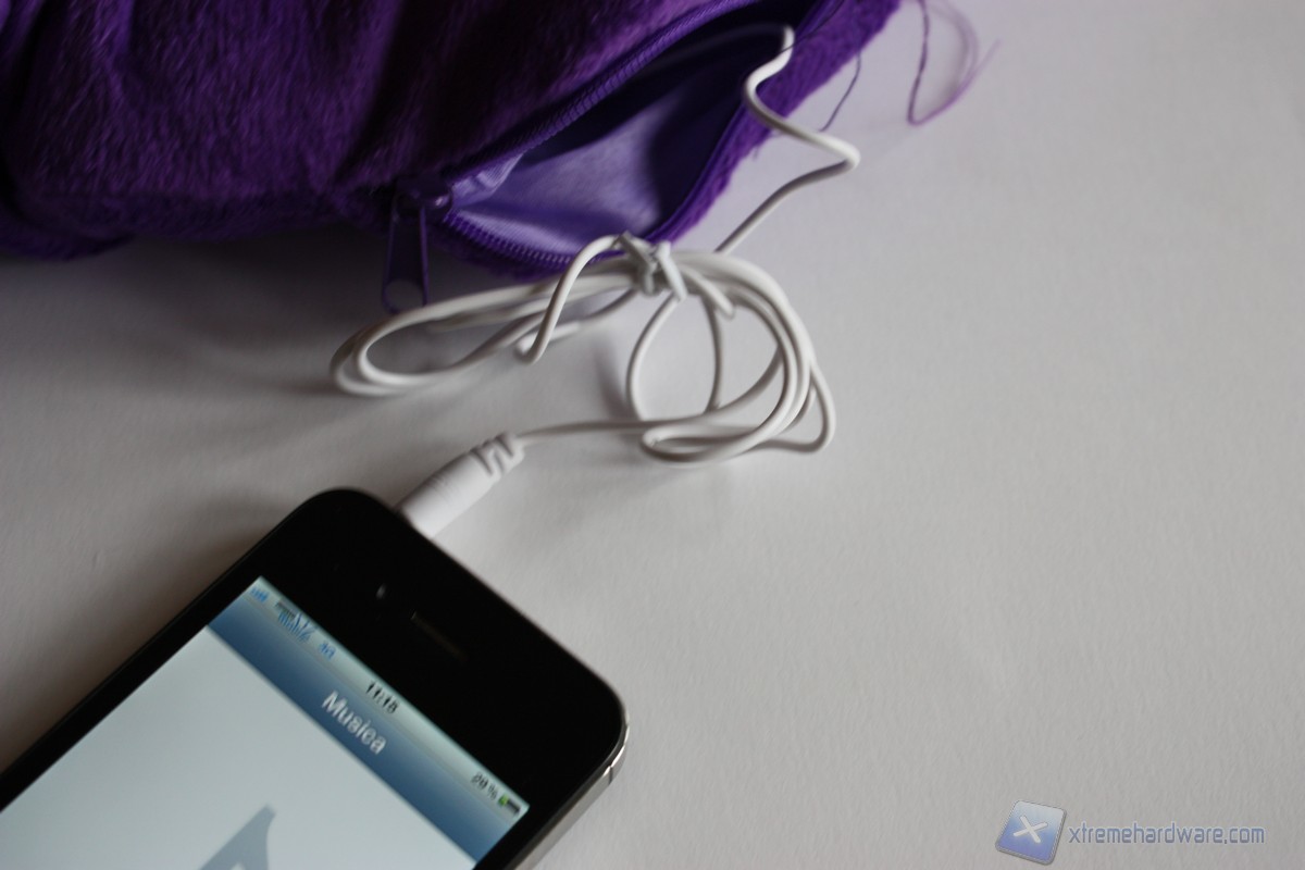 Per mettere in funzione l'Hi-Sleep, non ci resta altro che inserire il jack audio da 3.5 mm nell'ingresso del nostro Iphone e saggiare le doti musicali di questo cuscino.