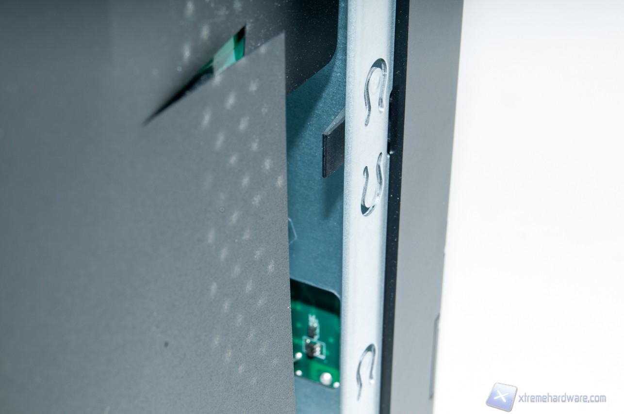 Per rimuovere il pannello frontale ci basterà svitare le due viti che troviamo all'interno dello chassis nella parte alta e la singola vite che troviamo in basso (nella foto n° 11 il prodotto è rivolto con la faccia verso il basso).