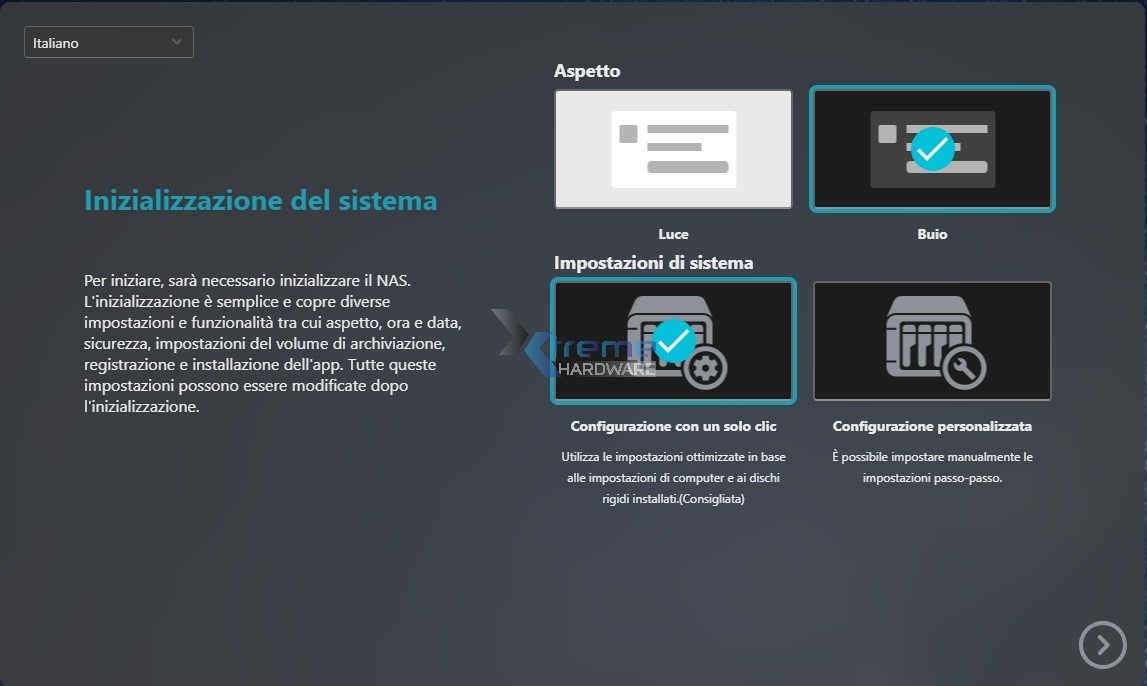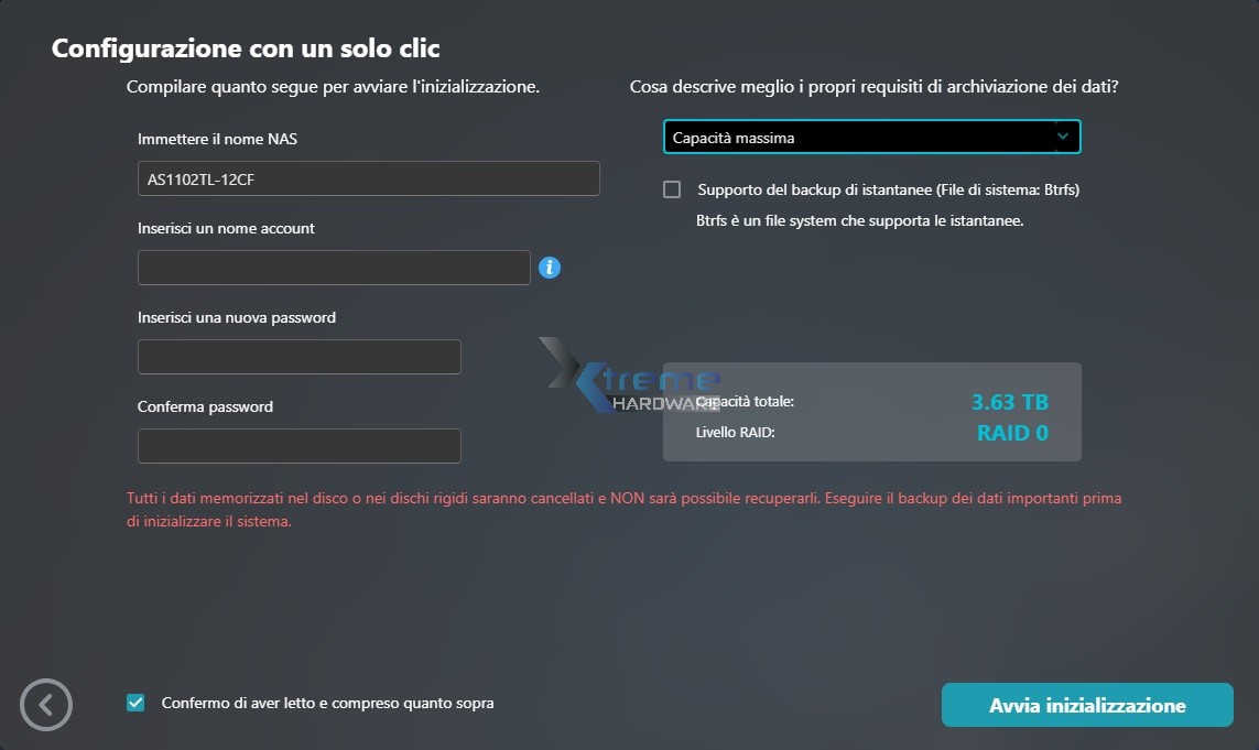 Tra le fasi di configurazione possiamo nuovamente notare come potremo scegliere quale configurazione hardware e software scegliere (RAID 0 o RAID 1) in modo tale da prediligere un utilizzo ridondante o di massima capacità e storage dei nostri dati.