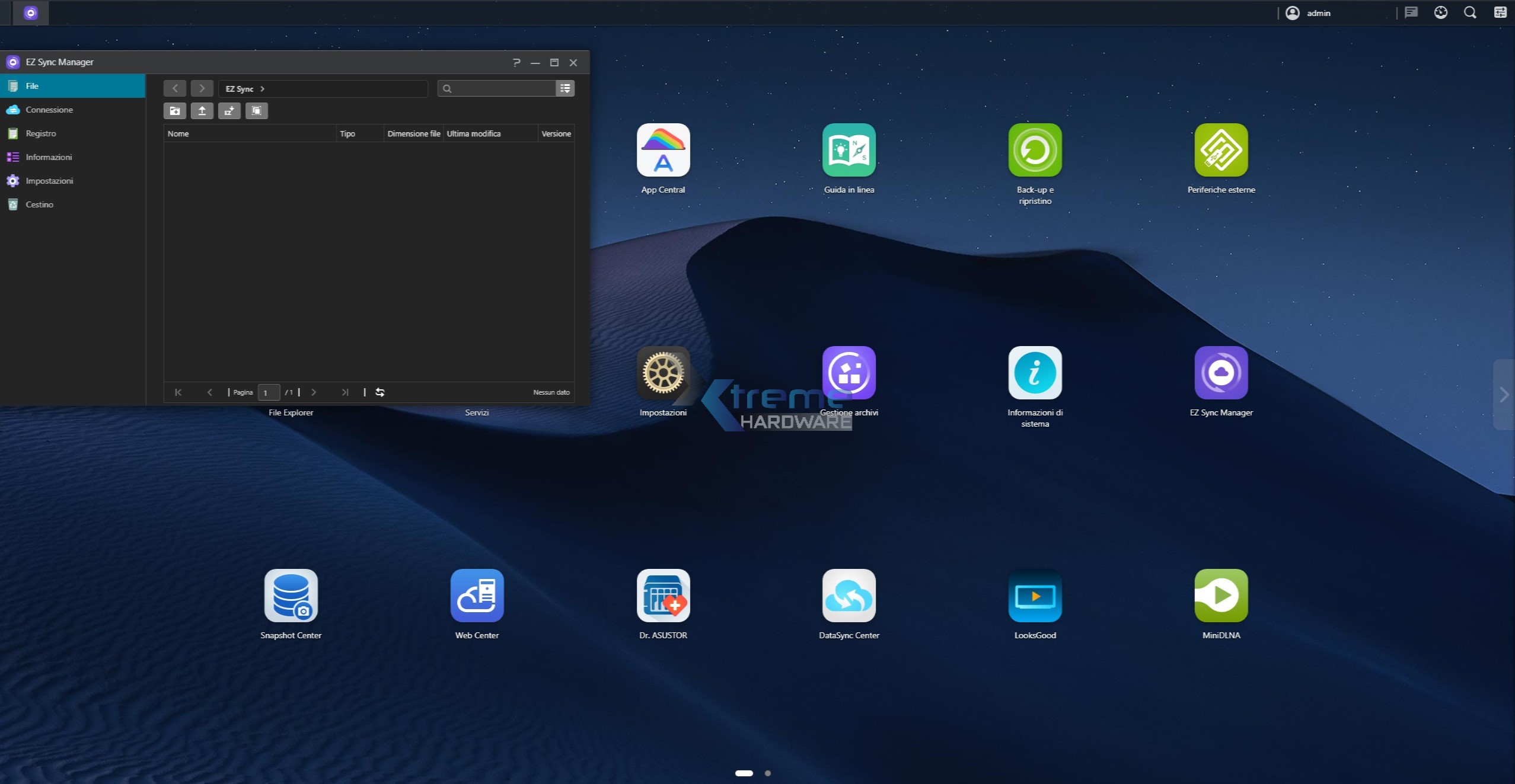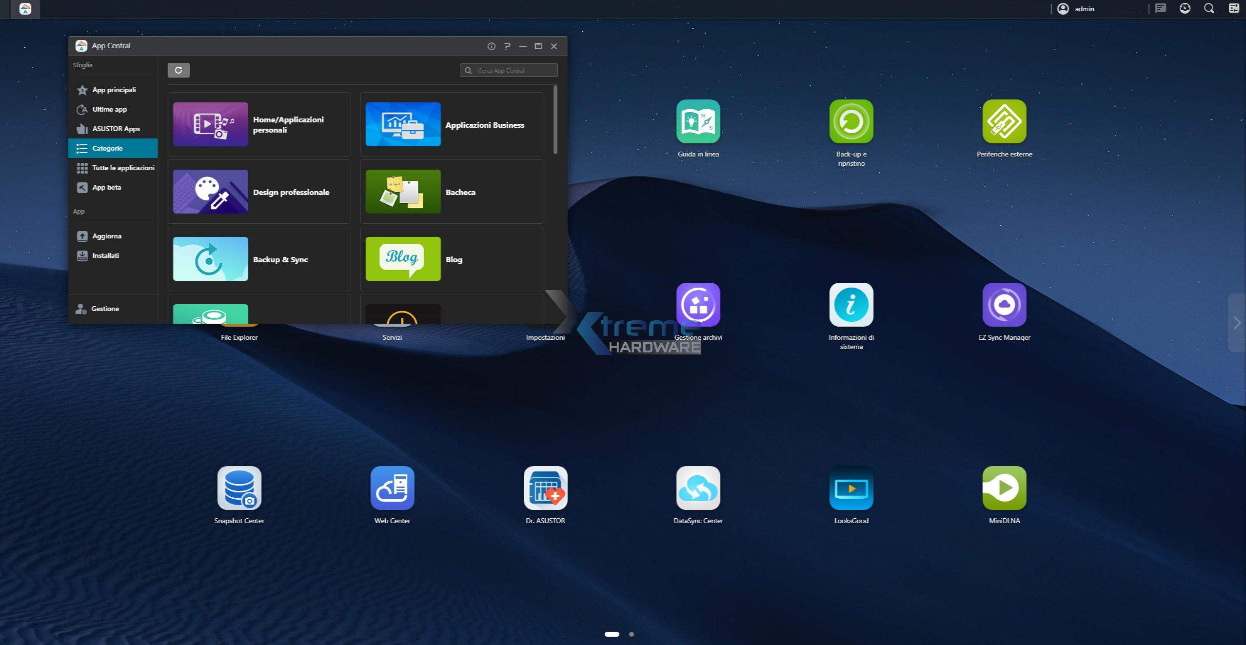 I due NAS sono dotati di una differente versione del software Asustor ADM. Partiamo dunque con il Drivestor 4 AS1104T che è dotato ancora della precedente versione, precisamente l’ultima disponibile, 4.3.3.RC92. Gli utenti non dovranno preoccuparsi di ciò in quanto il Drivestor 4 supporta l'ADM 5, ora fase beta, è scarcicabile dal seguente link https://www.asustor.com/betaProgram. L’interfaccia a nostra disposizione è quella che già conosciamo così come le App a nostra disposizione, scaricabili e non. Ricordiamo che tramite lo store interno ovvero l’App Central potremo scaricare l’applicazione che più soddisfa le nostre esigenze ed utilizzi. Potremo scaricare l’app Plex per creare e sfruttare il NAS come server multimediale o gestire il NAS come server FTP per i nostri file con il noto FileZilla.