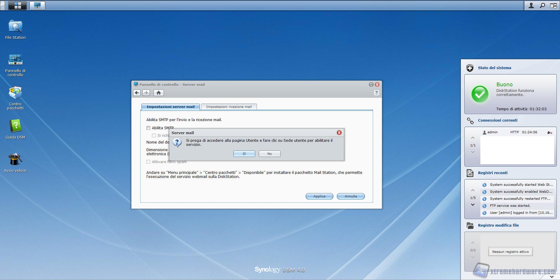 Come descritto nel menù “Notifica”, il Synology DS212j ha la possibilità di inviare e ricevere email; questa sezione permette l’abilitazione di questa funzione.