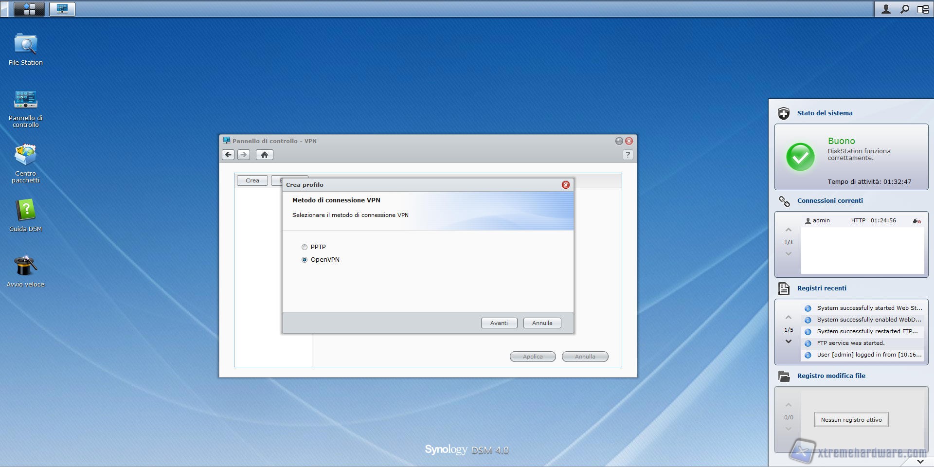 Per crearne una premiamo sul bottone “crea” e seguiamo il wizard, possiamo scegliere tra una connessione PPTP o OpenVPN.