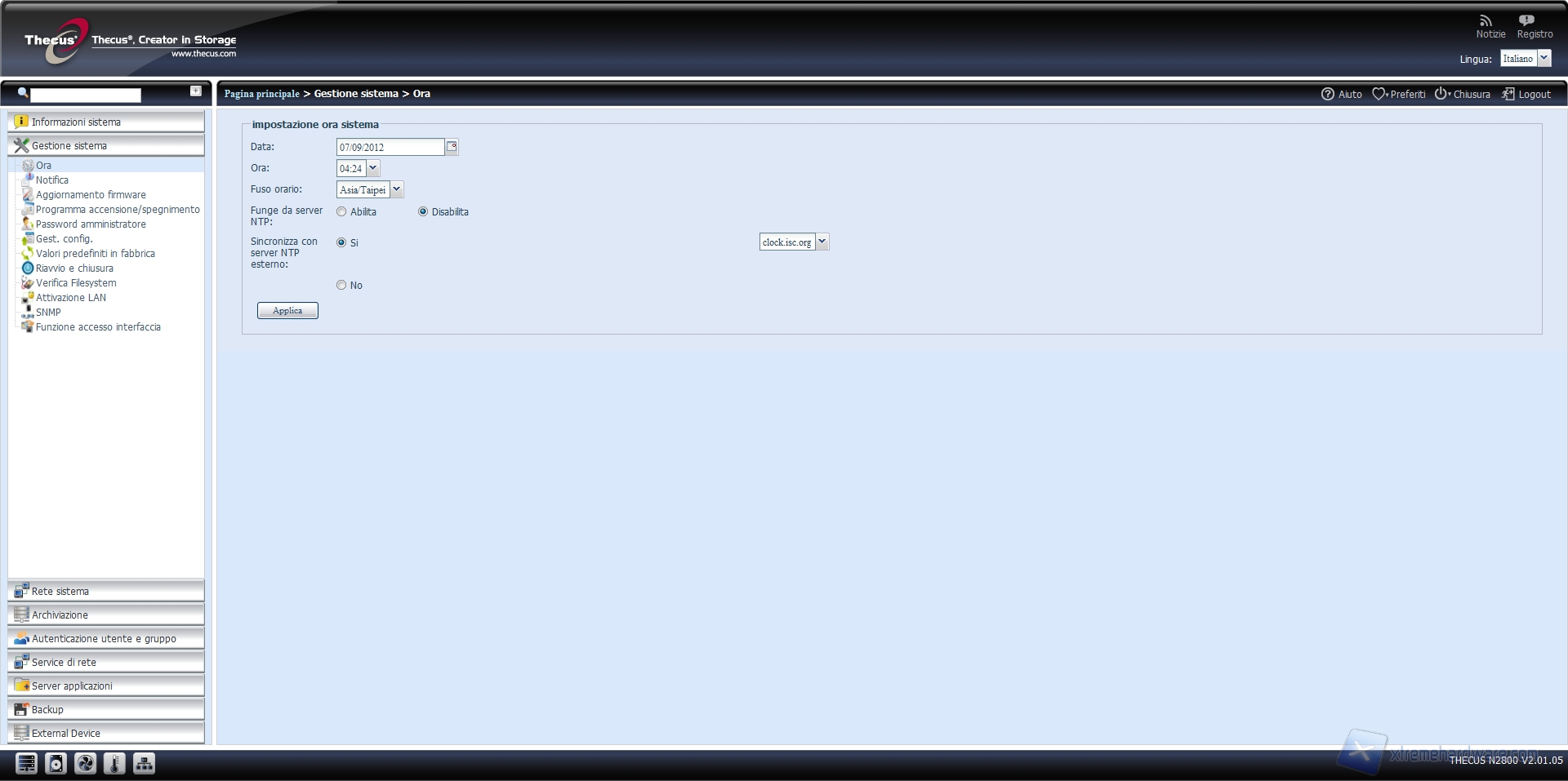 Il menù “Ora”, come è facile immaginarsi, consente di impostare la data e l’ora, oltre che al fuso orario.