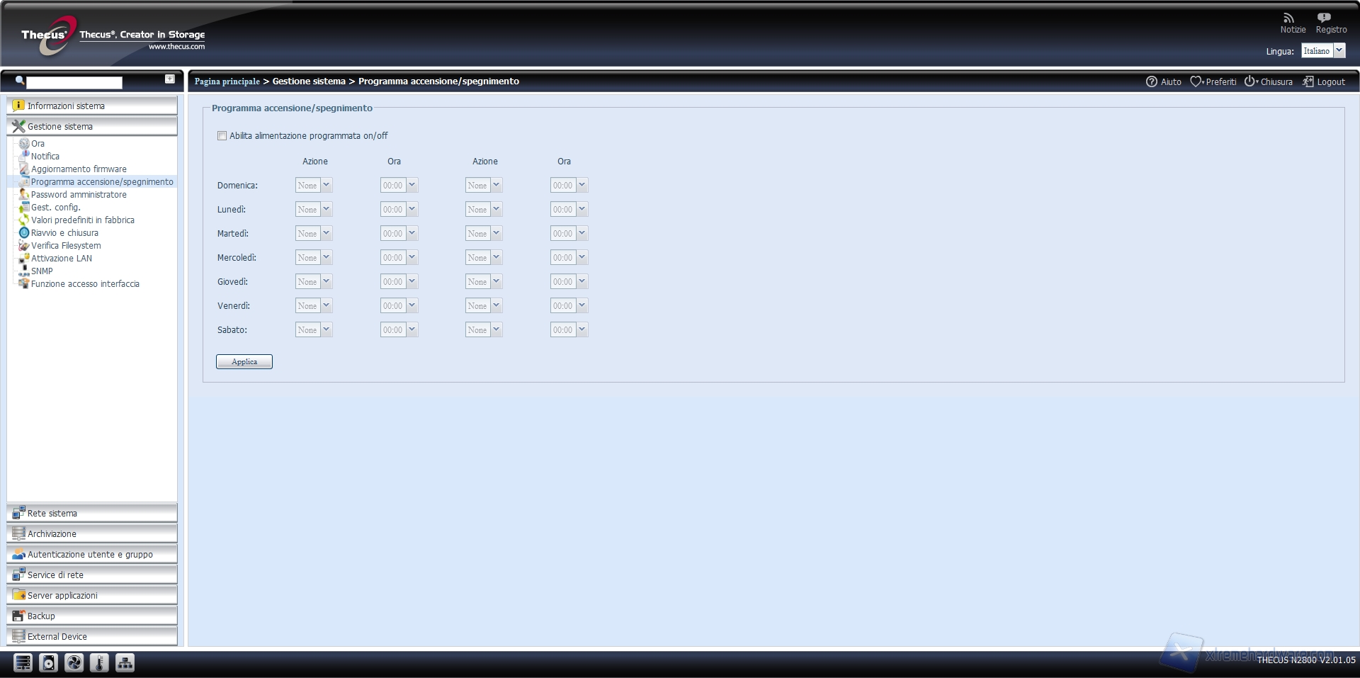 In questo menù possiamo scegliere se far accendere o spegnere il sistema ad una determinata ora di un determinato giorno della settimana.