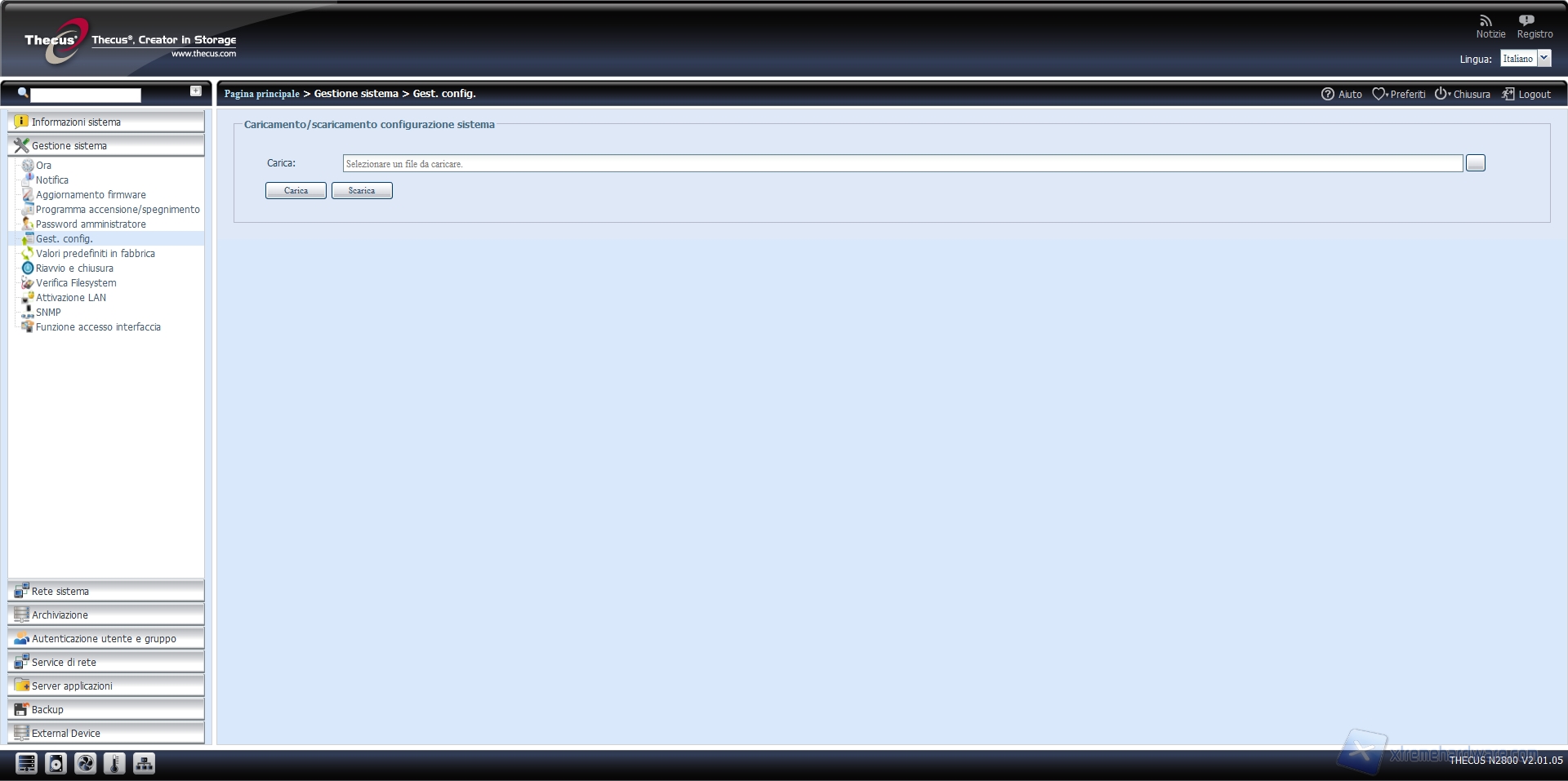 Funzione interessante che permette di salvare e caricare successivamente le impostazioni di sistema evitandoci, in caso di reset o problemi del sistema, di dover settare tutto nuovamente.