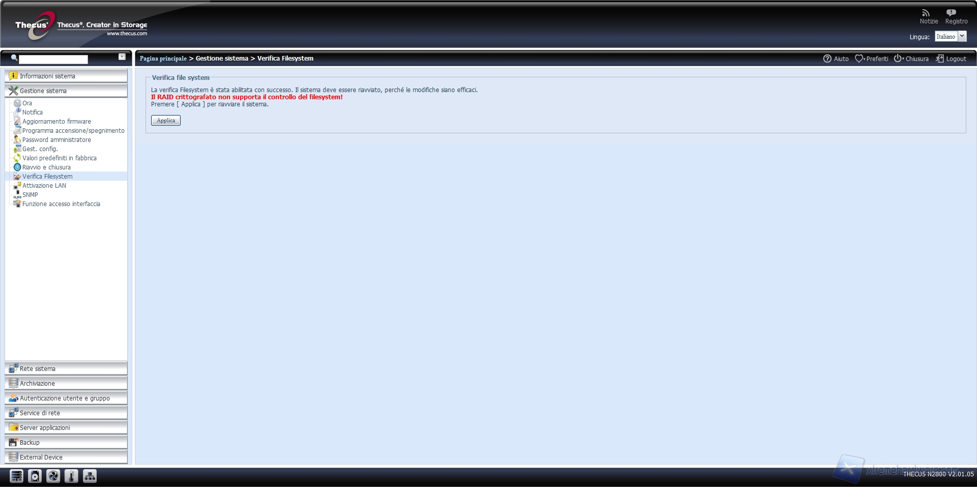 Tale funzione esegue una diagnostica del file system dei dischi installati nel sistema.