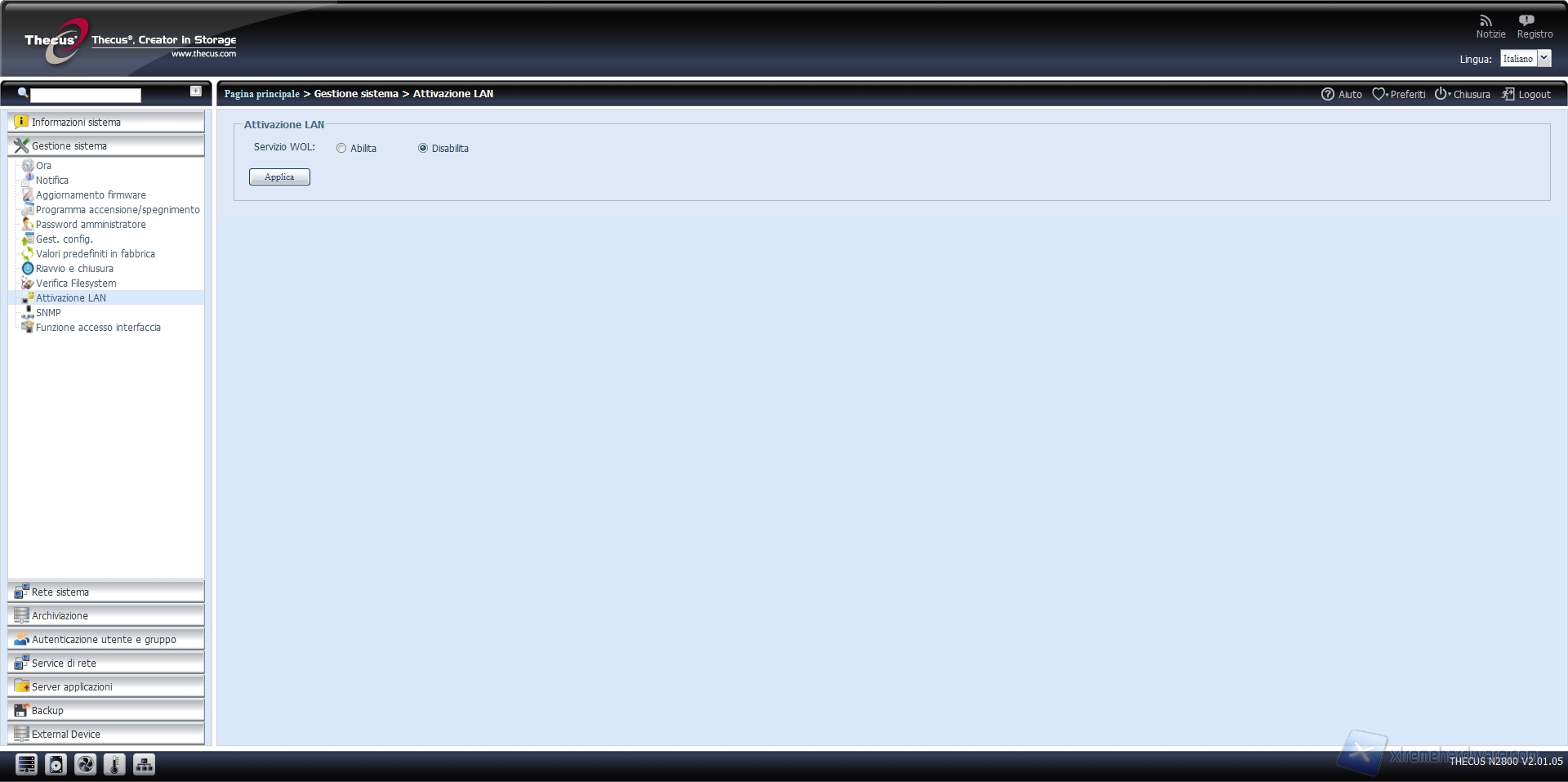 Tramite questa schermata possiamo attivare il servizio Wake On Lan.