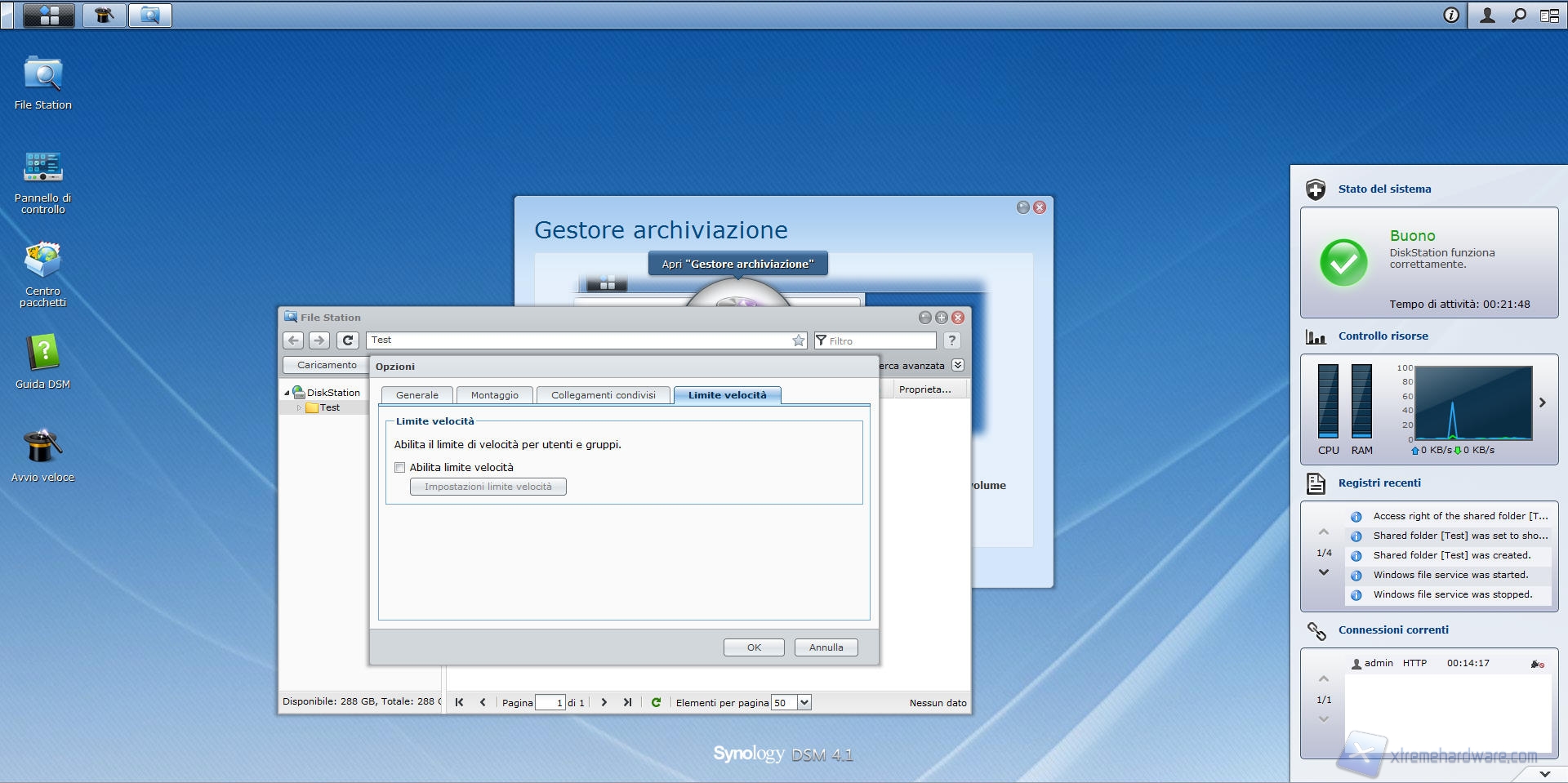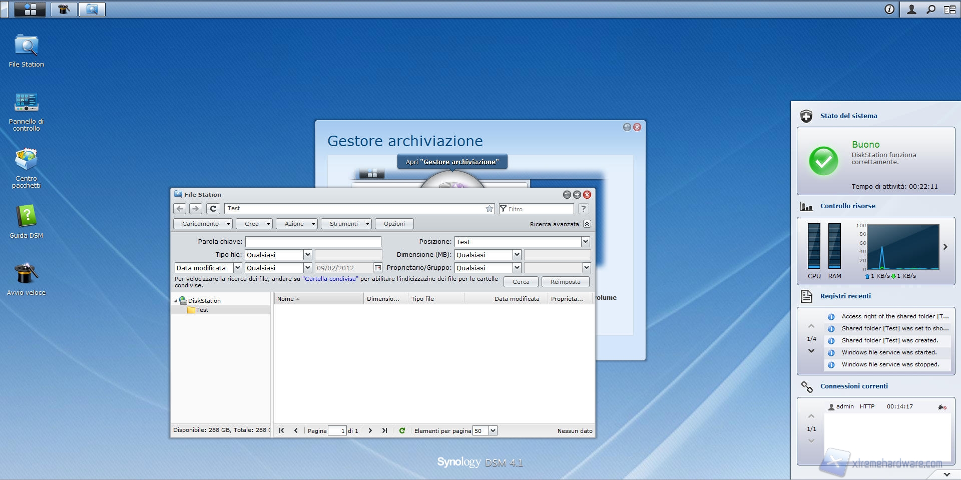 Synology DS412+: File Station e Pannello di Controllo