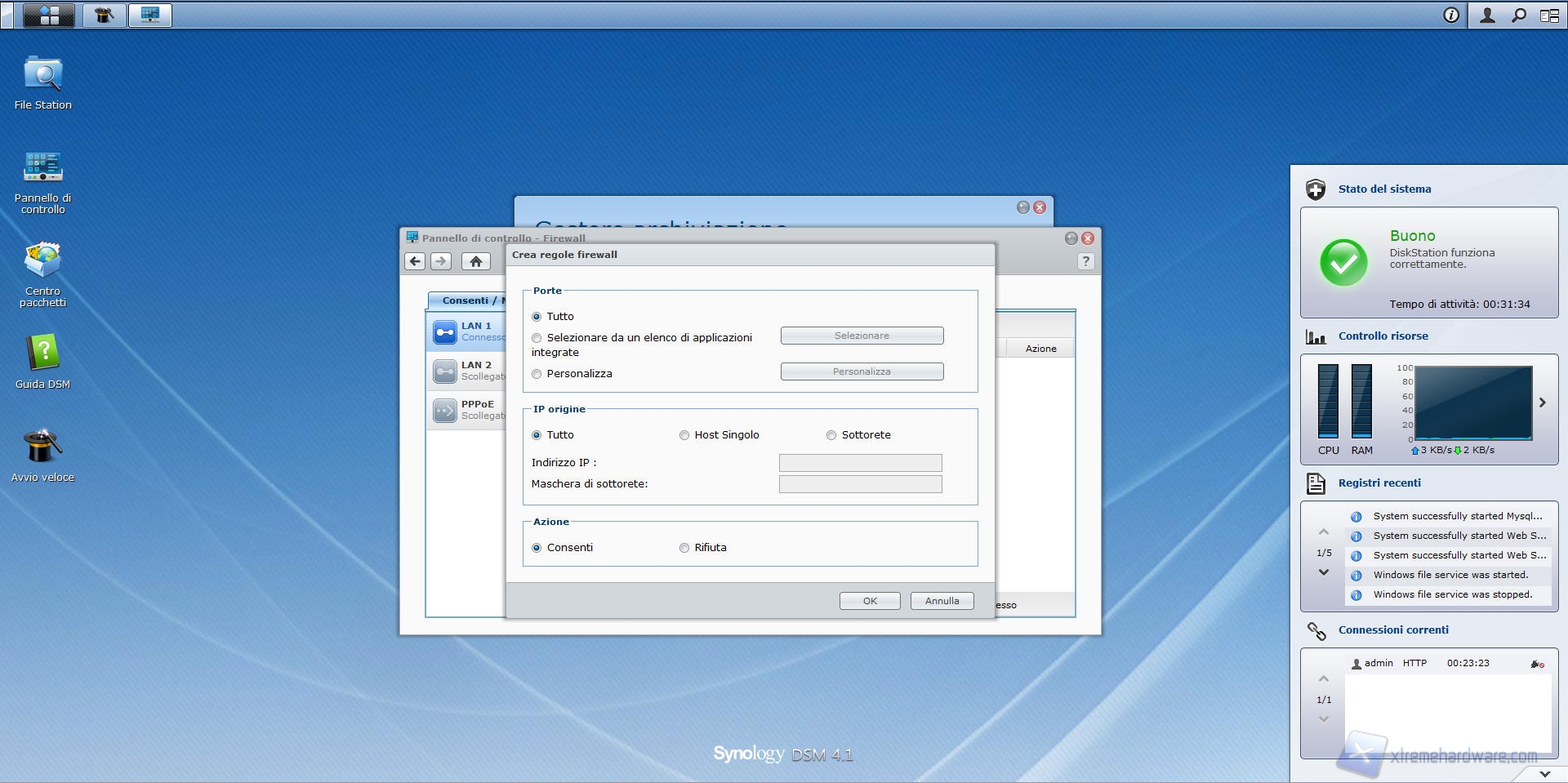 Altro sistema di sicurezza che impedisce o consente l'accesso al Synology DS412+ è la funzione "firewall".