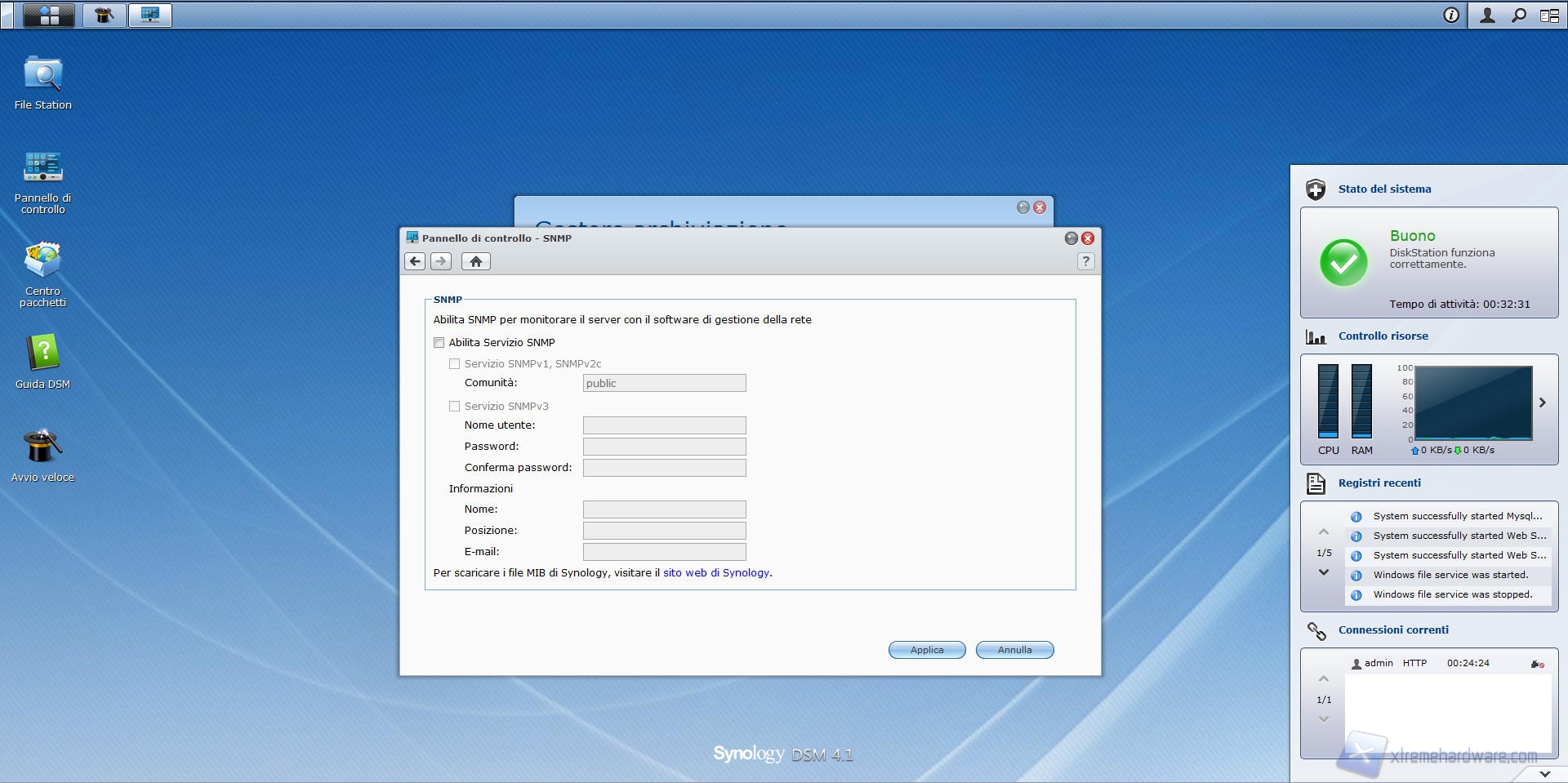 Il Simple Network Management Protocol (SNMP) è un protocollo attraverso il quale è possibile monitorare l’attività di rete del DS412+ ed in questo menù possiamo abilitarlo.