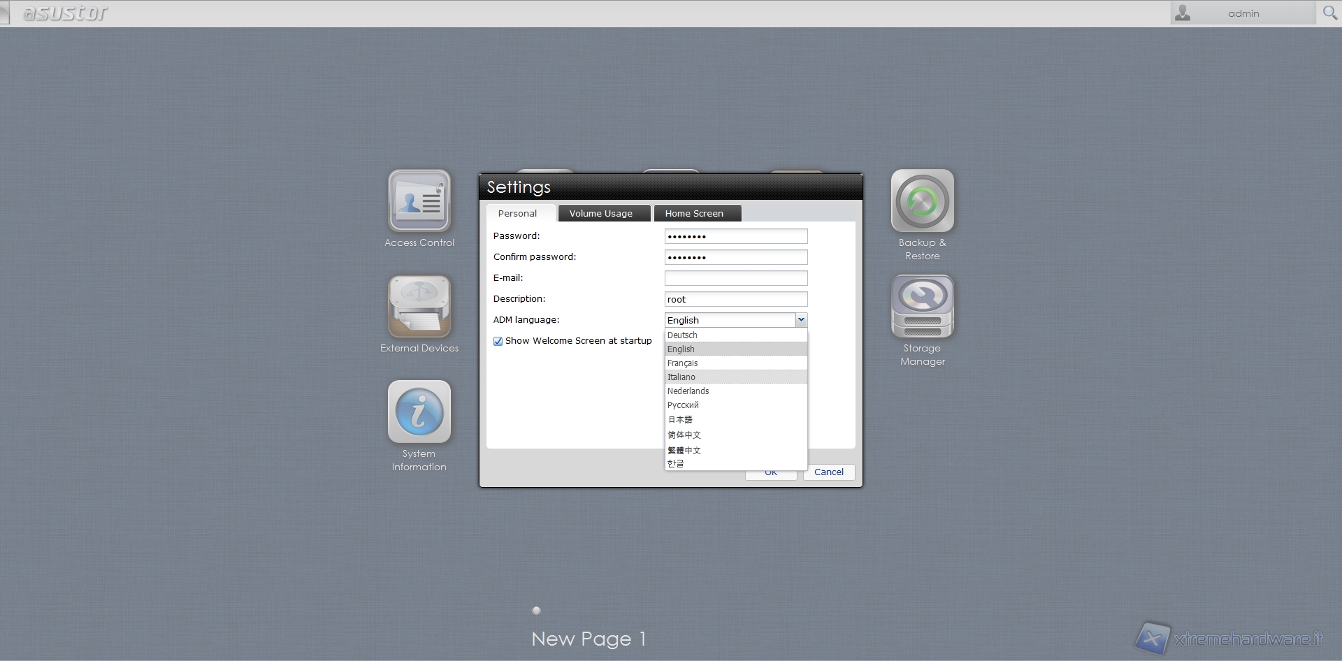 Connettiamoci all’Asustor AS-602T tramite il Control Center oppure inserendo nella barra degli indirizzi del nostro browser preferito l’indirizzo IP assegnato al NAS.