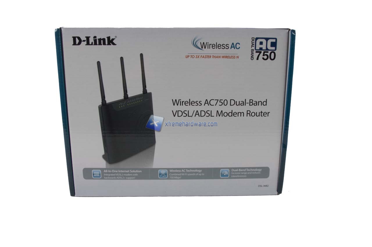 Il D-Link DSL-3682 ci giungerà in una classica confezione di cartone plastificato sulla quale troveremo tutte le specifiche, caratteristiche e informazioni del caso senza dimenticare qualche immagine illustrativa.