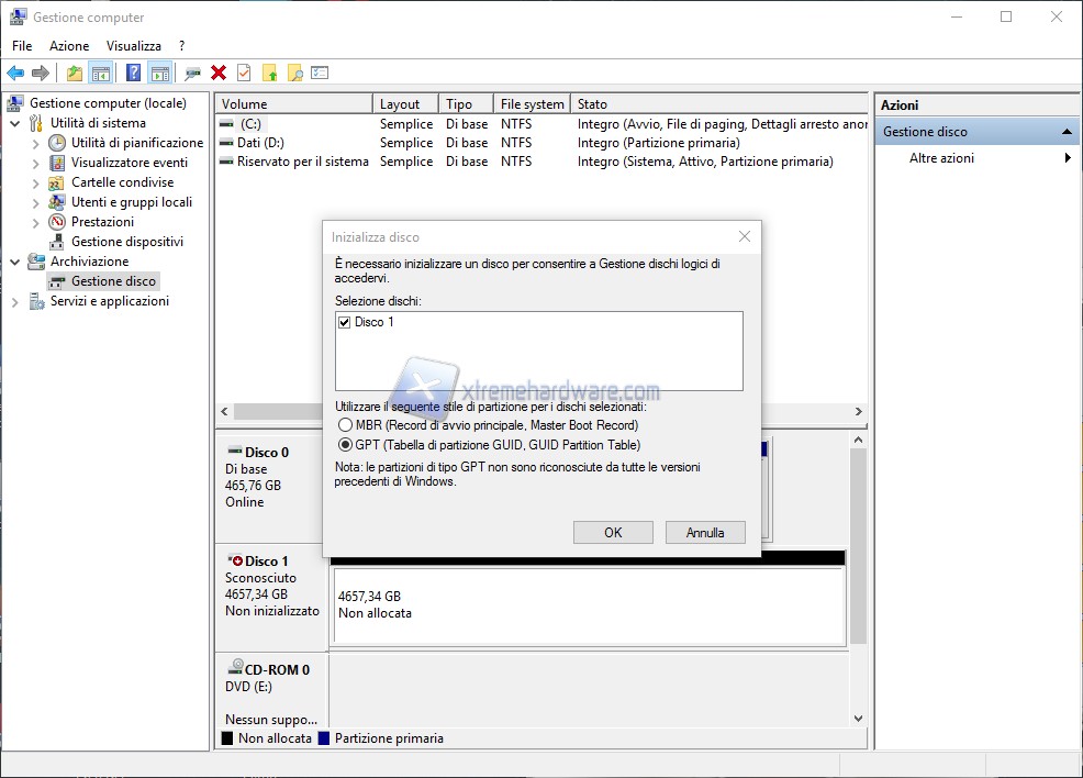 Proseguiamo recandoci in Gestione Computer (che troviamo nel Pannello di controllo –> Strumenti di Amministrazione) ed inizializziamo il “disco” appena creato.
