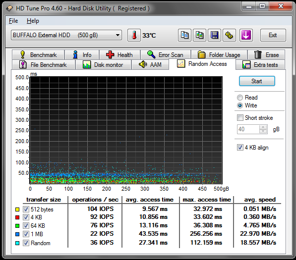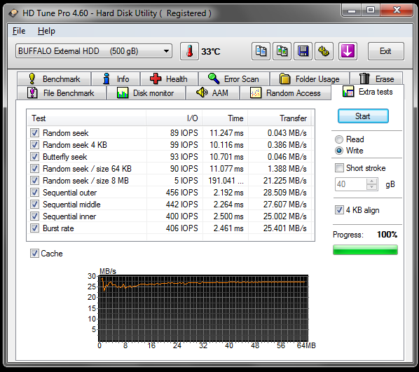 Anche in questo caso come già evidenziato con la DriveStation, nei test condotti con questo tipo di collegamento, si può evidenziare una limitazione di banda passante fornita dalla tecnologia USB di seconda generazione. Siamo andati incontro, infatti, alla saturazione della bandwidth per 33 MB/s in lettura. Nella prossima pagina avremo modo di vedere le prestazioni effettive senza limitazioni delle USB 2.0.