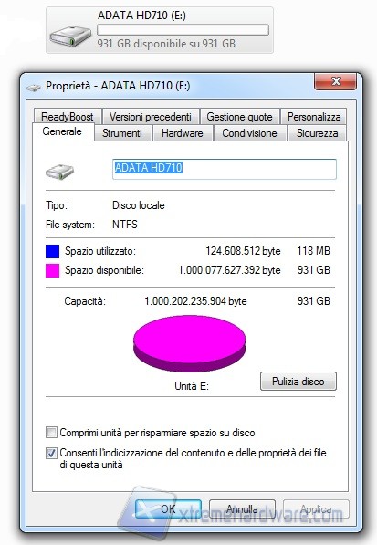 Abbiamo testato l'unità ADATA DashDrive Durable HD710 collegandola ad una scheda madre dotata di controller USB di terza generazione Intel Z77, ovvero la ASUS Maximus V. La scheda madre è equipaggiata con il processore Intel Core i5-3570K affiancato da 16 GB di RAM Corsair Dominator Platinum con frequenza di 1866 MHz.