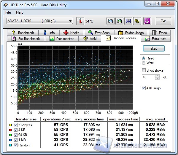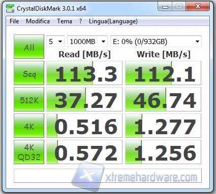 I valori ottenuti relativi al benchmark sia in lettura sia in scrittura dimostrano le ottime prestazioni del disco, che si attestano in entrambi i casi attorno ai 100-110 MB/s. Nella media degli HD 2,5” gli access time, che risultano attorno ai 19 ms.