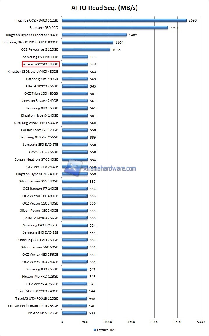 A seguire i grafici con i valori ottenuti dall’Apacer AS2280 da 240GB: