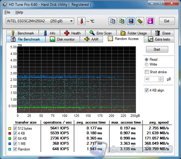 Test effettuati con Drive vuoto appena connesso all’interfacce Serial ATA 3Gb/s e 6Gb/s, senza aver effettuato alcuna partizione specifica al Disco di test, i test sono effettuati in modalità RANDOM (casuale).