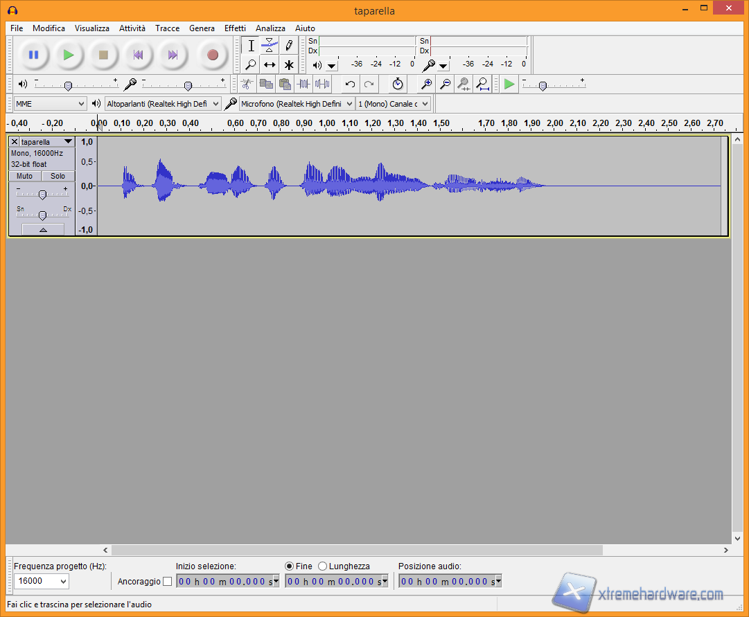 Una volta ottenuto il nostro file wav, il gioco sembrerebbe fatto, ma dobbiamo andare a migliorare alcuni aspetti: infatti ho notato che la traccia audio che viene “renderizzata” da DSpeech contiene dei secondi di silenzio sia prima che dopo la frase. Questi secondi di pausa sono completamente inutili e rallentano il tempo di risposta del nostro EasyVR che, invece di riprendere subito l’ascolto per un nuovo comando, riproduce un file audio “vuoto”.